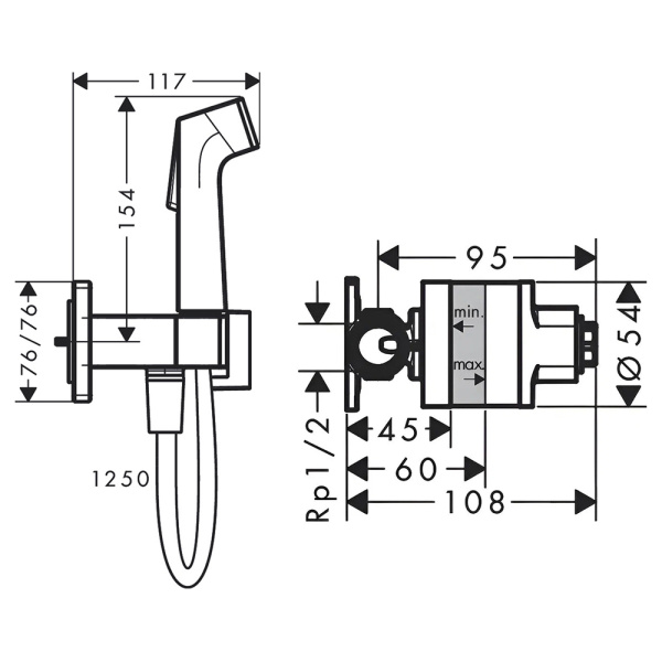 Гигиенический душ со смесителем Hansgrohe Ecosmart+ 29233670 С ВНУТРЕННЕЙ ЧАСТЬЮ, черный матовый