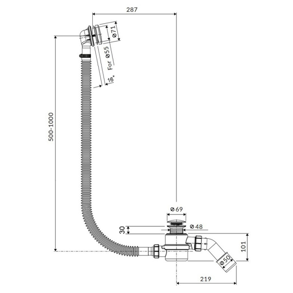 A507CKM-80 Сифон д/ван низкий, с тонк.рез не для стал.ванн ClicK-Clack AL хром ALCAPLAST
