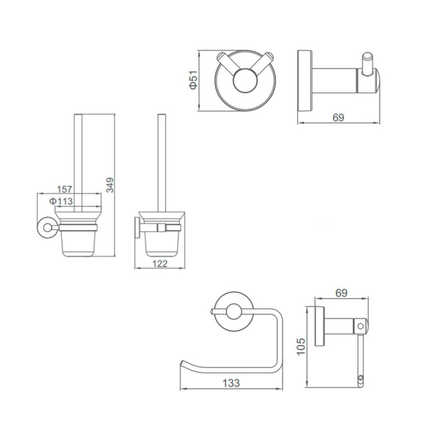 Набор Accoona 121 нержавеющая сталь Бумагодержатель открытый+Ершик+Крючок двойной