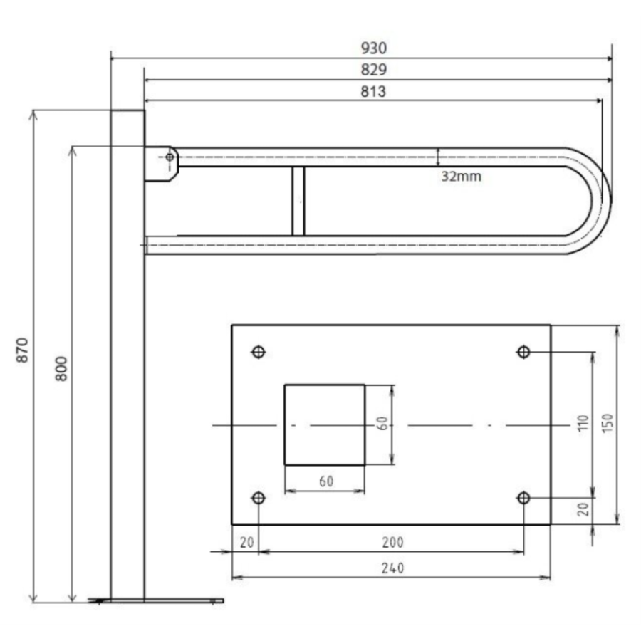 301107601 Help program Откидной поручень, с дополнительным креплением в пол 813 mm Bemeta