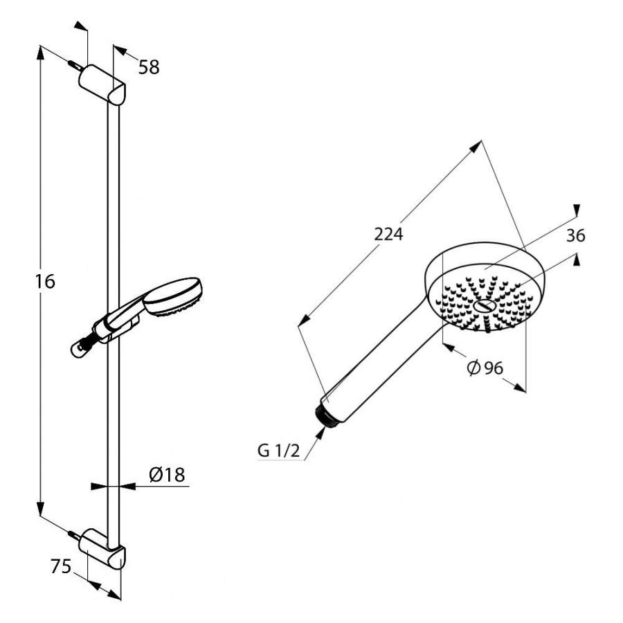 Душевая штанга, Душевая лейка,Крепления, Шланг