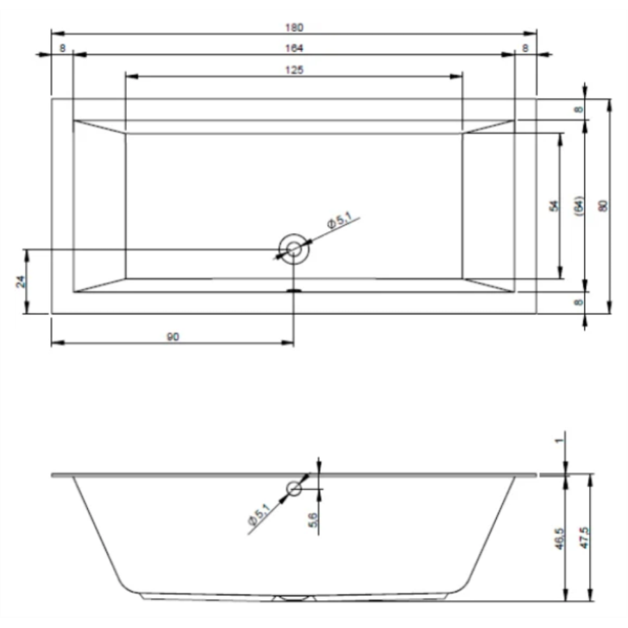 Акриловая ванна RIHO Lugo 180х80 белая, без ножек