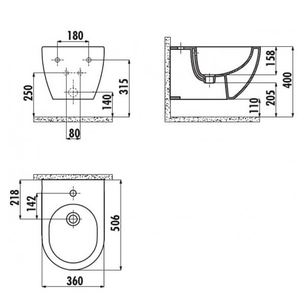 Биде подвесное Creavit Free FE510-00CB00E-0000 белое