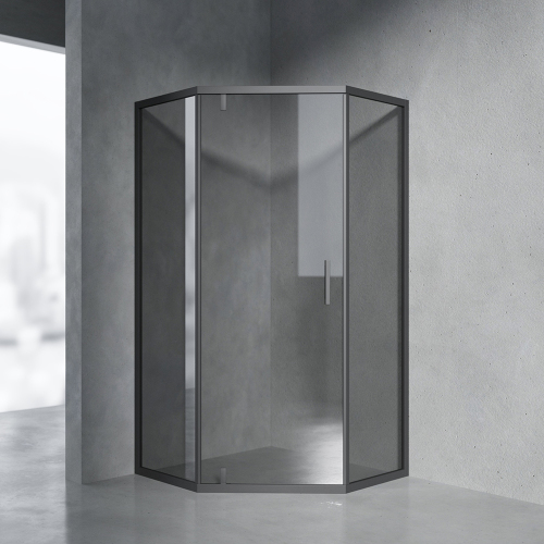 Душевой уголок AVS Трапеция Слим 100x100 профиль черный матовый, стекло черное
