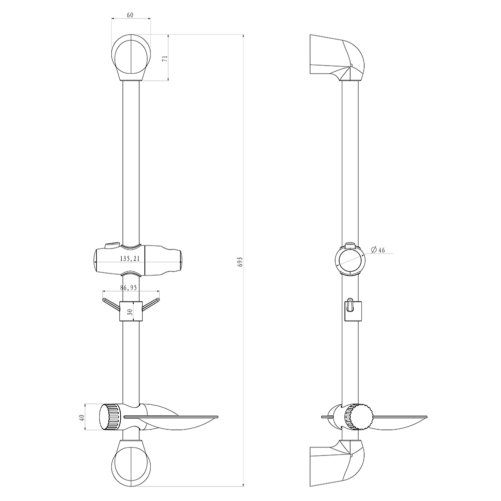 Штанга; Держатель ручного душа; Полочка; Крючок;