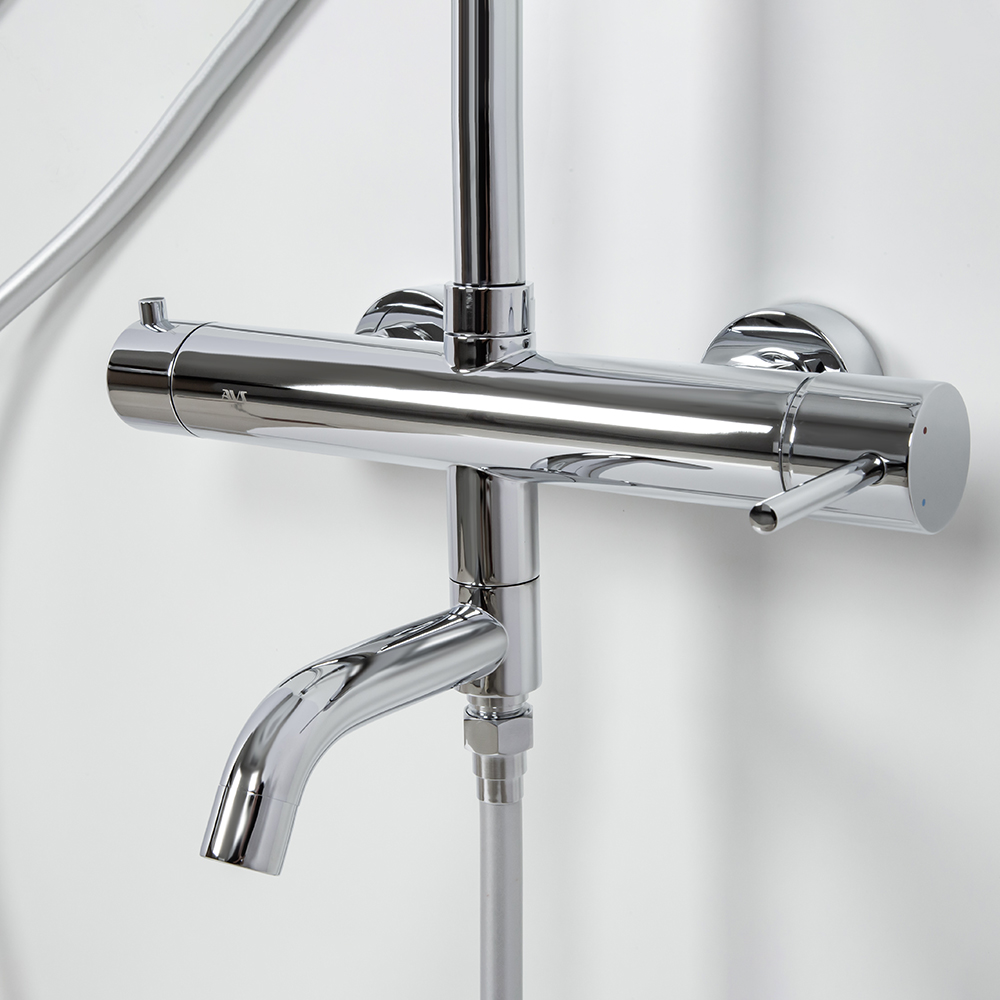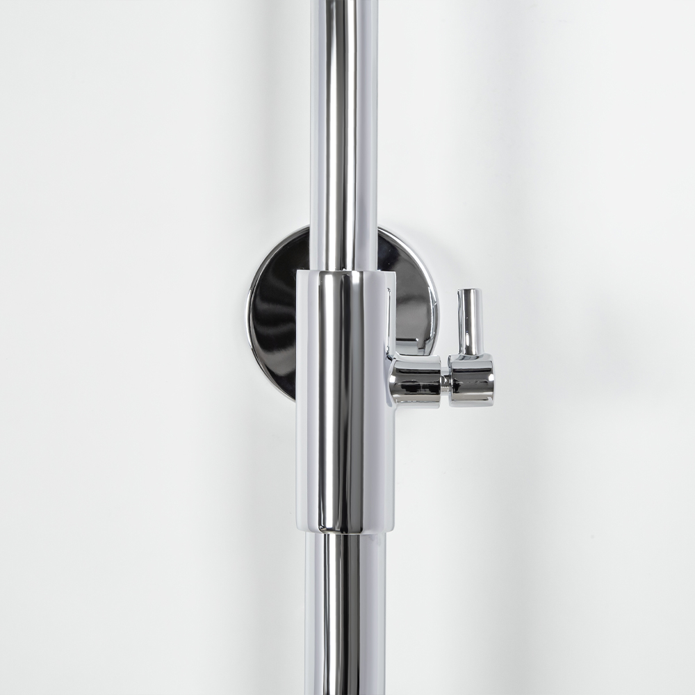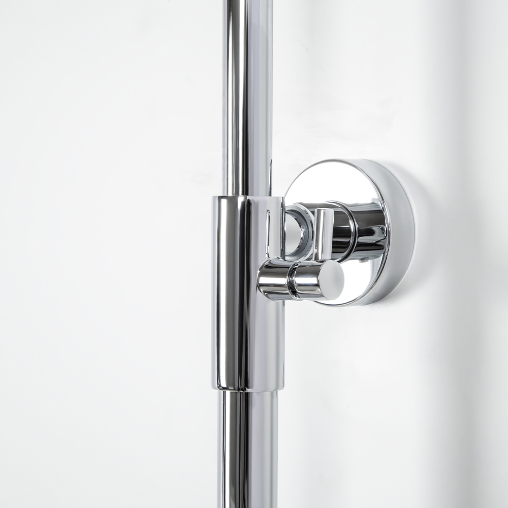 душевая стойка; комплект эксцентриков; смеситель; верхний душ; душевой шланг; ручной душ; инструкция.