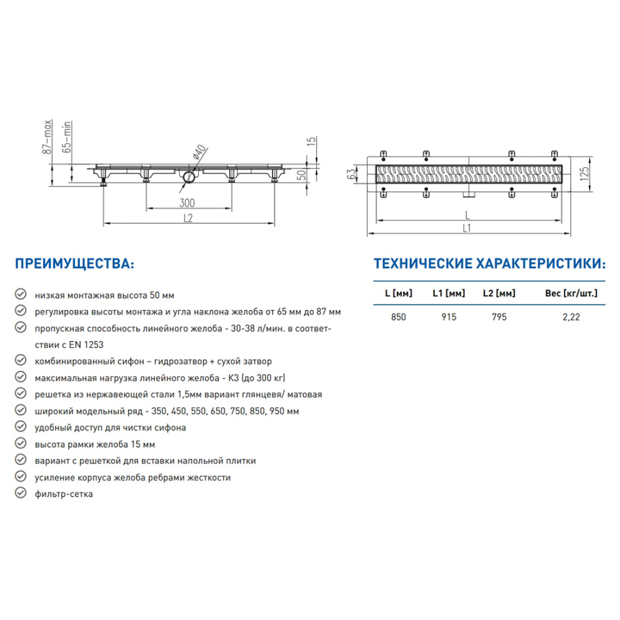 Душевой лоток MCH Chudej Medium 85 см, титан матовый