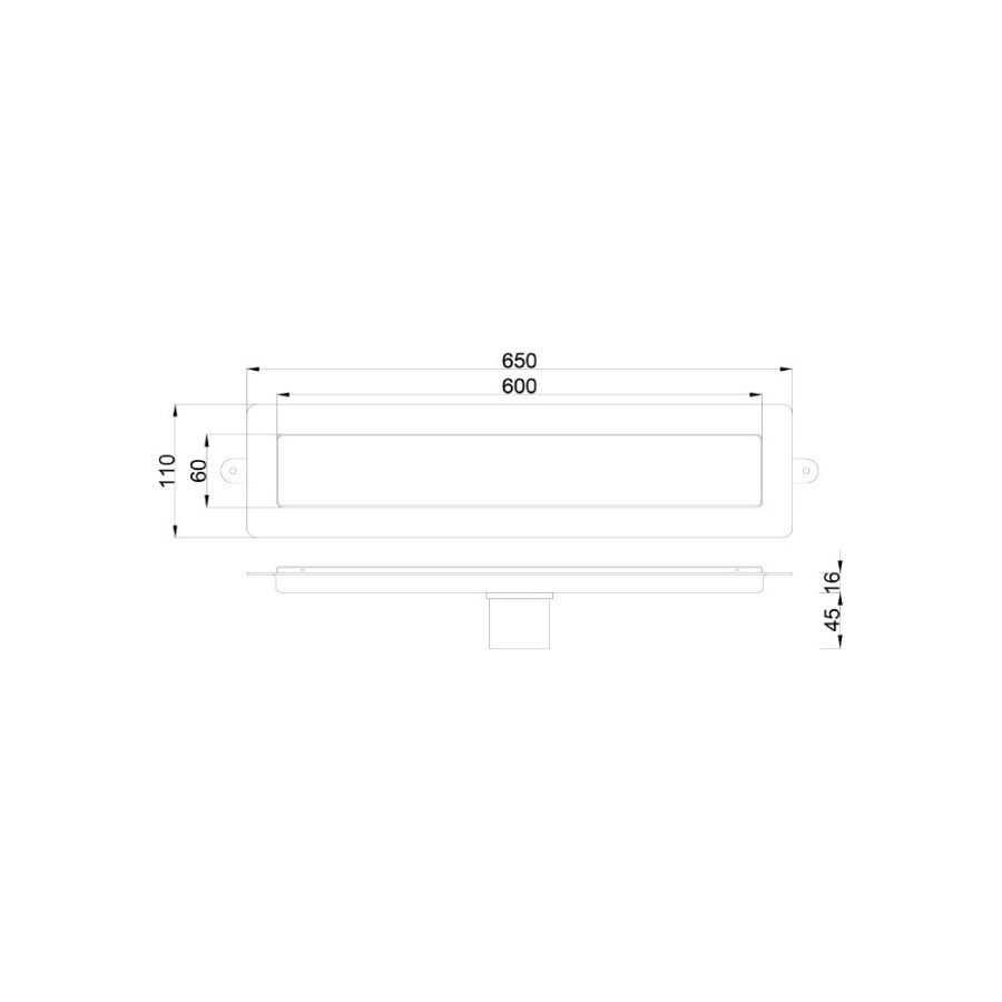 гидрозатвор съемный, высотой 2,5 см; решетка двустороняя со щелью для воды; есть грязеуловитель; регулировка по высоте 2 см;нагрузка до 300 кг