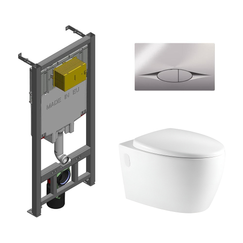 чаша унитаза; крышка-сиденье; инсталляция; кнопка смыва; комплект креплений; инструкция.