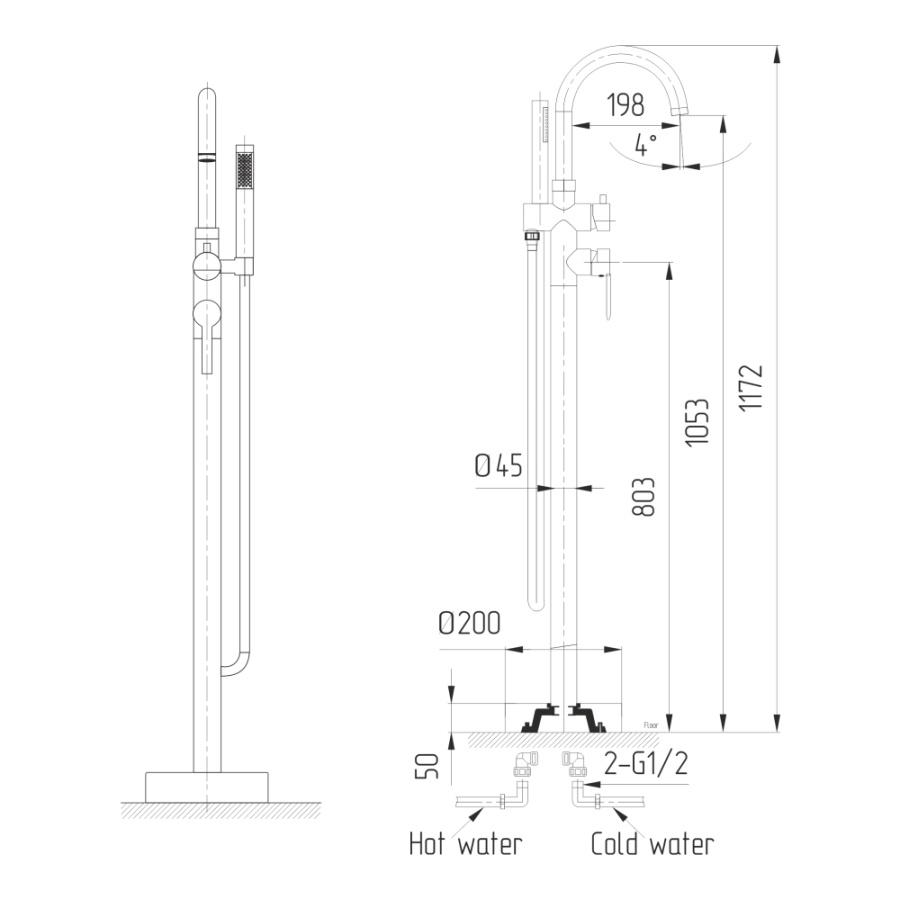 Смеситель для ванны с душем AVS Elegant напольный, брашированное золото