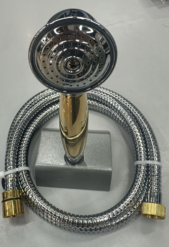 Ручной душ, латунь,хром/золото+Шланг душевой,антиторсионный, 150 см.,1/2"х1/2" хром/золото RICAMBI MIGLIORE