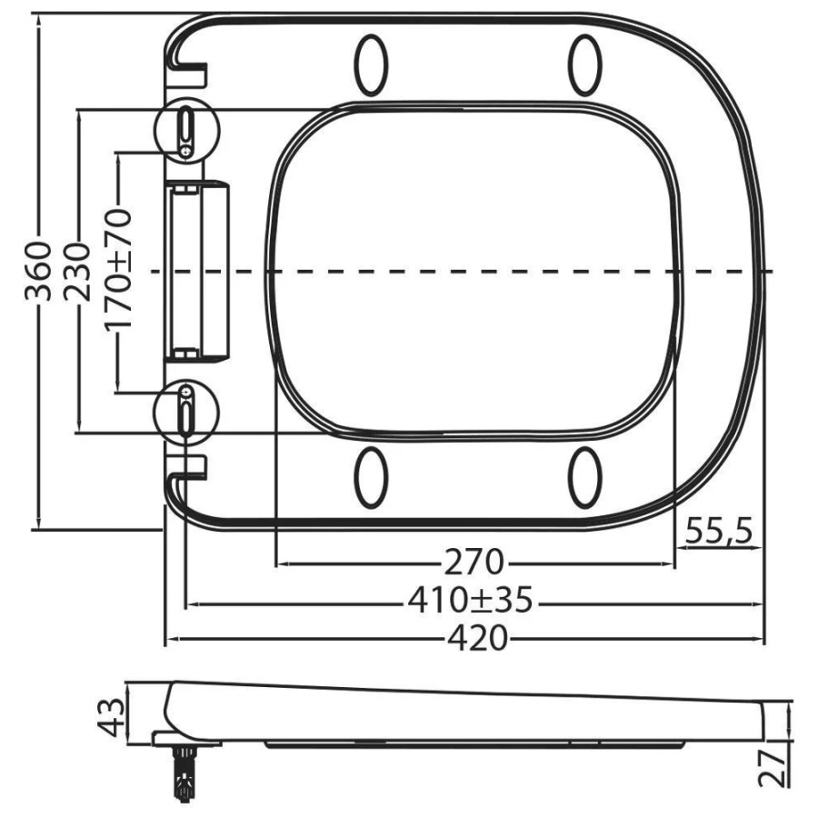 Высота чаши унитаза (см)