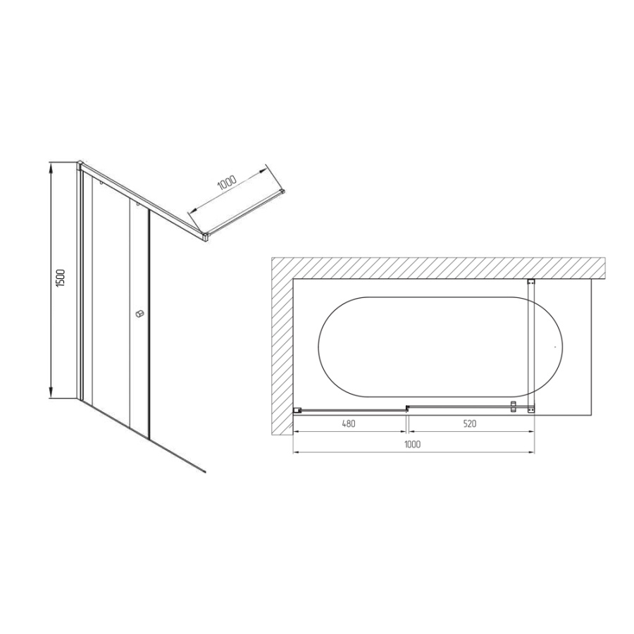 Шторка на ванну AVS Перла 100 L профиль хром, стекло прозрачное