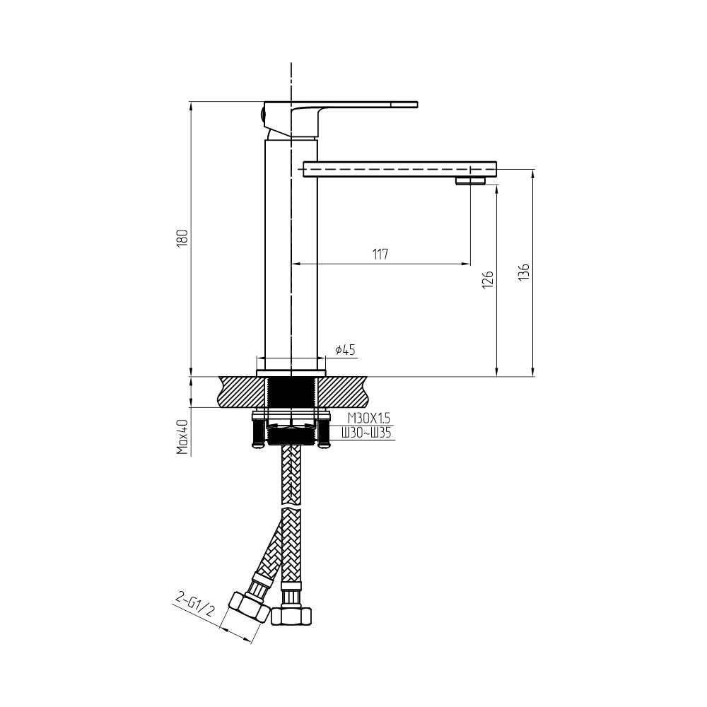 смеситель; комплект креплений; комплект гибкой подводки; инструкция.