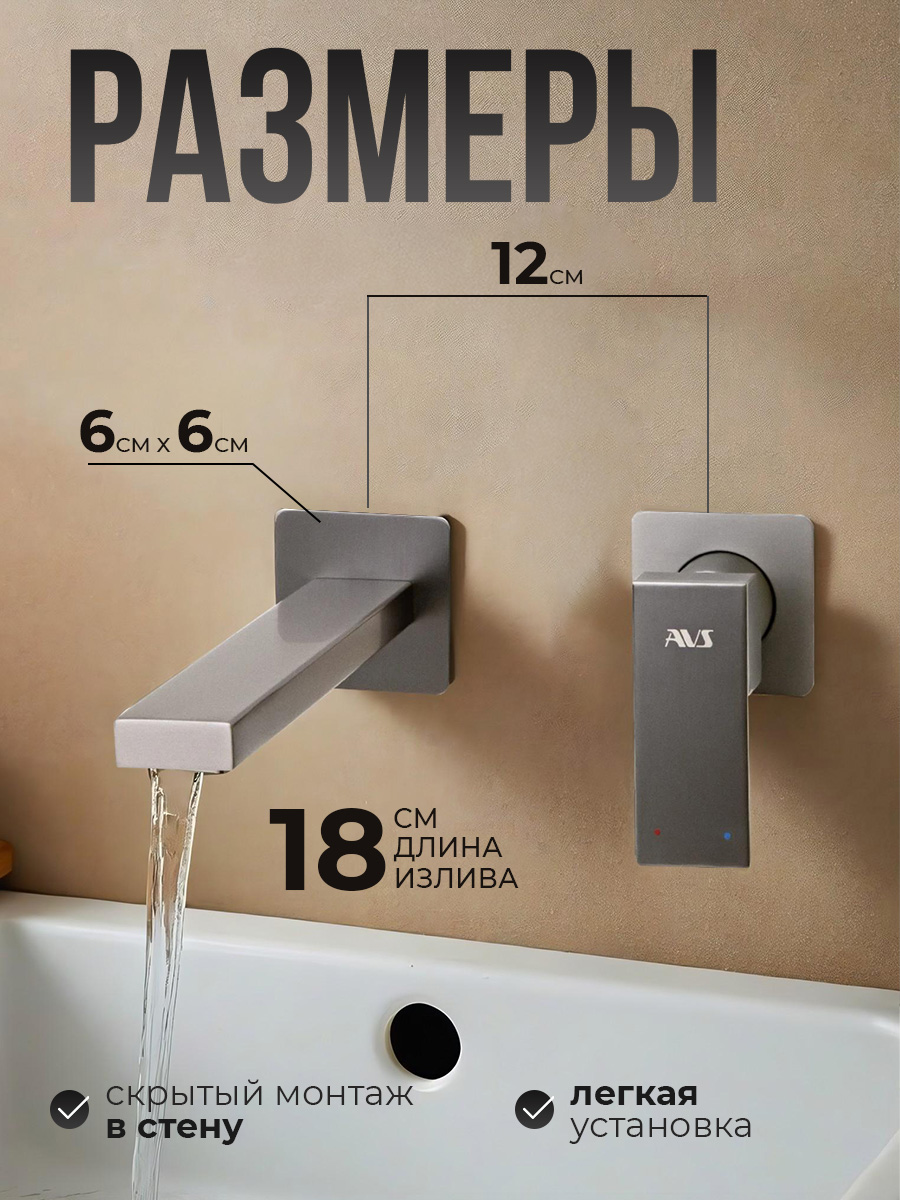 Смеситель для раковины AVS Cube с внутренней частью, оружейная сталь