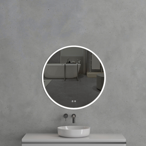 Зеркало из серебра без меди толщиной 5 мм с защитной пленкой сзади. Три цветовые температуры. Водонепроницаемость IP44. Мощность нагрева: 28 Вт. Мощность подсветки: 24 Вт.