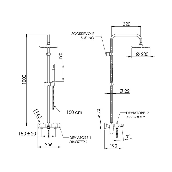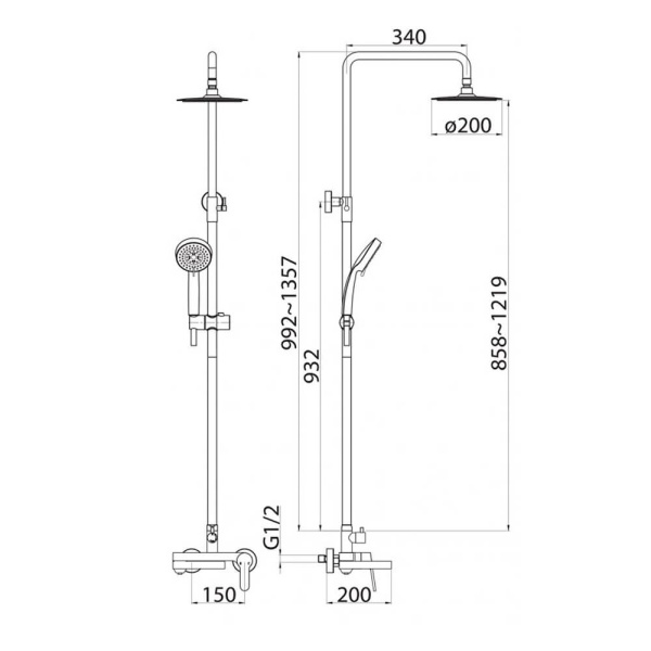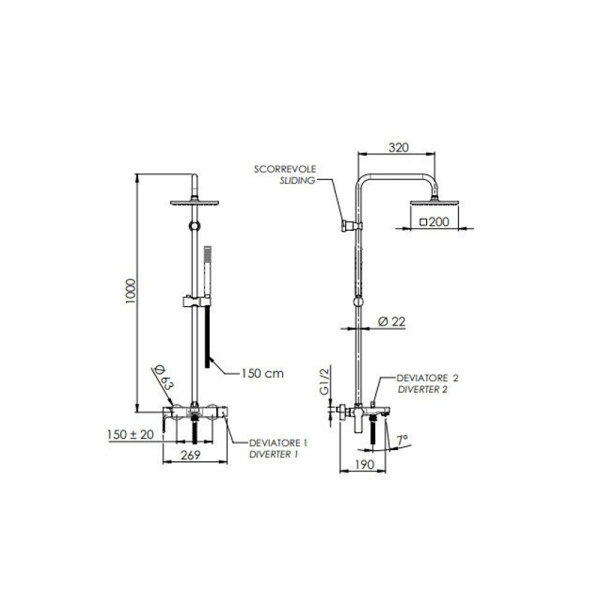3. Штанга. Опора, фиксирующаяся на стене, внутри которой чаще всего проходит гибкий шланг. В верхней ее точке находится верхний душ, подающий воду вертикально. Его положение не меняется практически ни в одной из моделей. Здесь же размещен кронштейн для лейки.