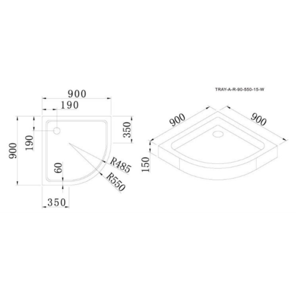 Поддон для душа Veconi Tezeo 100x100 белый, четверть круга, акрил, с сифоном
