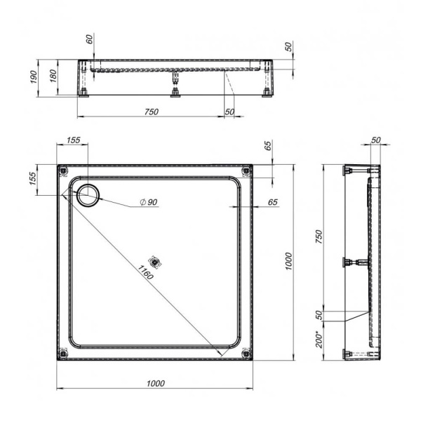 Душевые поддоны 100x100 см