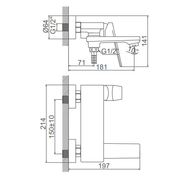 2. Настенные смесители — классическое решение, которое экономит место, отлично подходит для ванных комнат любого размера и устанавливается непосредственно на стену.