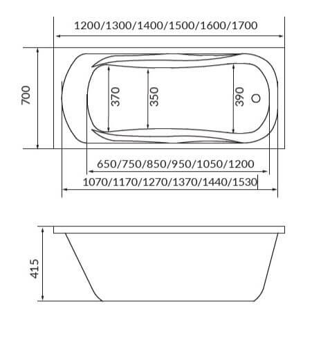 1. Прямоугольные. Это классический и наиболее распространенный вид акриловых ванн. Они доступны в разных размерах и глубинах, что делает их удобными для людей различной комплекции. Если комната небольшая, и имеет продолговатая – такая ванна будет хорошим вариантом.