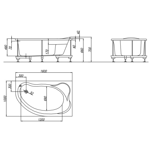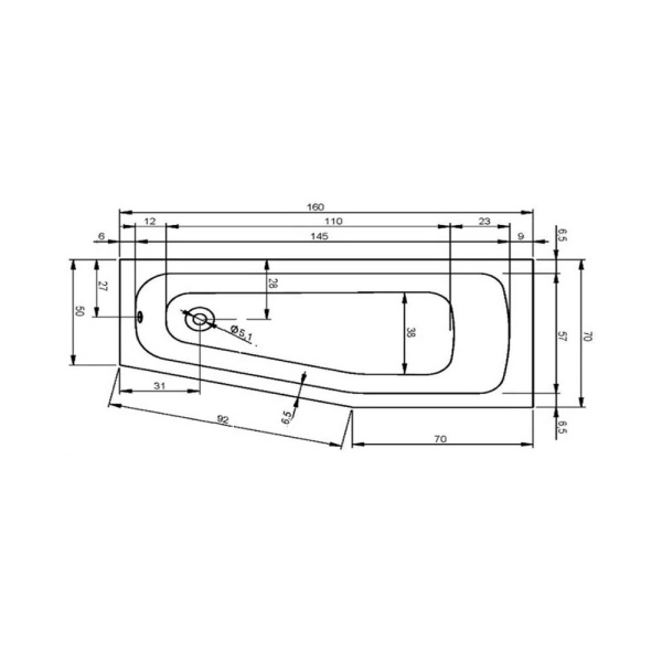 Акриловая ванна Riho Amalfi 160х70 L белая, без ножек