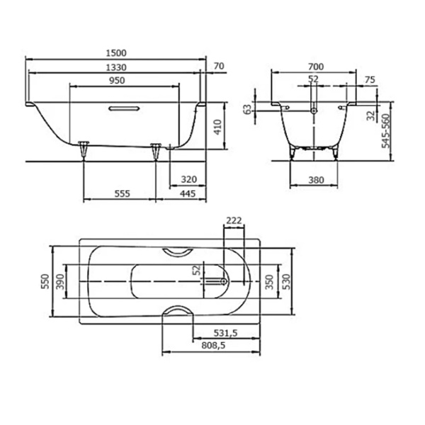 Толщина стали влияет на прочность и долговечность ванны. Рекомендуется выбирать модели с толщиной стенок не менее 2,5–3 мм. Такие ванны будут меньше подвержены деформации, а эмалевое покрытие дольше сохранит свою целостность.